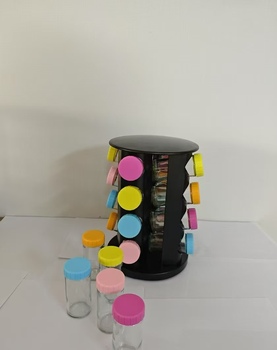 Support d'assaisonnement rotatif en acier inoxydable argenté à tête ronde avec bouteille d'assaisonnement